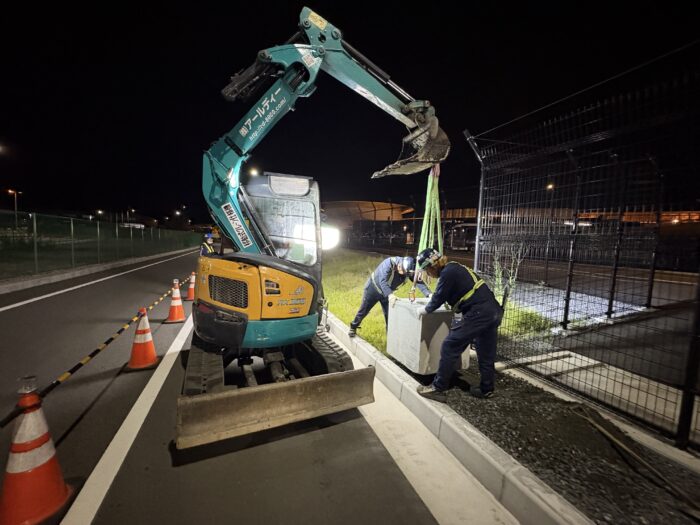 大阪・関西万博130m巨大プロジェクションマッピング投影に伴う交通安全対策製品設置及び歩道部切下げ工事及び開催終了後の歩道部復旧工事