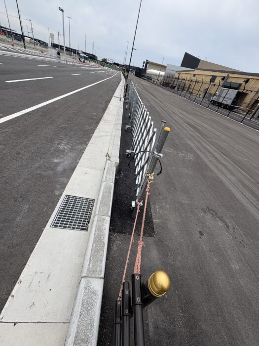 この度、東京都の某企業様から直接弊社にお問い合わせ頂きまして、2025年6月6日からの130m巨大プロジェクションマッピング投影に伴う交通安全対策製品設置及び歩道部切下げ工事及び開催終了後の歩道部復旧工事を施工させていただきました。